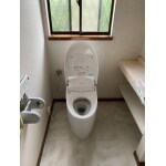 タンクレストイレになりスッキリしました。 便座は自動開閉に加え水も自動で流れます。 現在のトイレは大5L、小3.8Lの水量となっています。