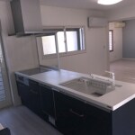 以前のキッチンは壁付けキッチン。広さはある物の食器棚や家電ストッカ―。大きなテーブルなどがあった事で、片付いているけどもごちゃごちゃしたスペースでした。