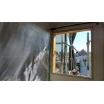新規の窓です。 サッシ交換は周りの外壁等を剥がし、サッシを入れ替えて元に戻します。 枠は白い塗料での塗装仕上げとなっています。