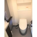 ハイバックなので壁紙への飛び跳ねもあまり気にならずにお使いいただけます。 カウンターを設置したので、ハンドソープもおいていただくことが出来るようになりました。