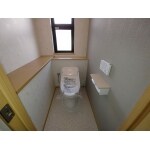 2階のトイレにはタンクレスに見えるタンク式のトイレをご採用いただきました。水圧が低い2階でもタンク式トイレと同じように使えます。