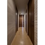 廊下は前回のリフォームで交換したLDKの扉に合わせ、全ての扉を木製建具に交換。石目のエコカラットを貼ってそれぞれの素材感が楽しめる空間としました。浴室はシンラ、洗面はエスクアを採用。蹴込部分にも間接照明を設置し、洗面台の浮遊感を演出。奥様こだわりの輸入タイルもきれいに照らしています。トイレ・寝室の間接照明は光源が目に入らないよう入念に計画しました。 主寝室はクローゼットを拡張。洋室はデッドスペースになっていた空間に収納を移設し、元々収納だったスペースにデスクを設置。柱と梁に囲まれたスペースを無駄にしないように造作しました。