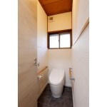 タンクレスにすることで以前よりも広く感じ、手すりを付けることで安全面にも配慮した温かみのあるトイレにリフォームしました。