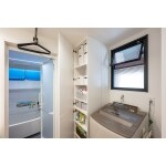 120cm幅の洗面に造作で収納を加えた使いやすい洗面室