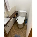 T社のピュアレストEX&カウンター式手洗器を設置いたしました。 便器はスッキリとしたデザインで便器側面の凹凸も少なく、お掃除しやすいものになっています。 手洗器は圧迫感の無いスタイリッシュなデザインで使い勝手も良いです。手洗器前にはパネルを貼っているので、簡単に拭き掃除ができ、汚れにくくなってます。
