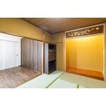 眺望も日当たりもよい南側の和室二間と縁側をひとつの大空間にするプランをご提案しました。調査段階で小屋裏にあがり見つけた立派な梁を生かした吹抜天井が最大の見どころです。