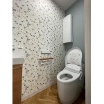 収納棚を壁に設置して、手洗い下の収納をコンパクトにしたことで、トイレスペースが狭くなることなく掃除道具を収納することができました