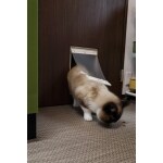 ドアごと新しくして猫が自分で出入りできる潜り戸付きのドアになりました。