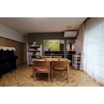 リビング入り口ドアに猫の出入りのために手でドアを開け閉めしなくて良いように潜り戸付きのドアに入れ替えて、床はレトロ感のあるヘリンボーン柄の長尺シート貼りにして、お手入れしやすい床となりました。奥様のお好きな昭和レトロ感漂う大人なイメージの仕上がりになりました。