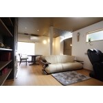 壁面に収納棚を取り付け、収納スペースを設けることで、乱雑になりがちなリビングの物は一か所に収納し、すっきりしたリビングはゆったりくつろげます。