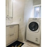 隣の和室の押入れを半分脱衣室に取り込み少し配置を変更しました。3面鏡が正面に付き、ボウル下も開き扉ではなく引出しタイプにしたことで収納しやすくなりました。