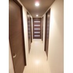 幅広で収納たっぷりの明るい廊下