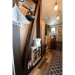 取りたい壁には筋交いが入っていたので、筋交いを「あらわし」にしてクロスでお化粧しました。 個性的な奥様のセンスに合わせて、クロスも個性的な柄のチョイスとなりました。