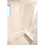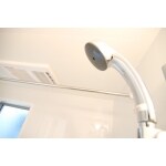 お客様のご要望で高さを自由に変えられるタイプのシャワーにし、お掃除が楽なシステムバスをご提案させていただきました。 全体を白くすることで明るく、また広さを感じて頂けるかと思います。