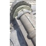 【施工前】 鬼瓦の漆喰が劣化し、剥がれ落ちてしまっている状態でした。