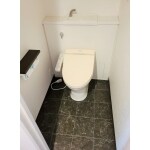 クッションフロアを石目調のブラックをセレクトすることにより、シックでスタイリッシュなトイレ空間になりました。