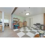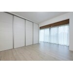 キッチンから目が届く位置に子供部屋を配置しました。リビングとの間には4枚引き込みの開閉間仕切り戸を設計し、普段は開放的に勉強や就寝時には締め切ることができるようにしました。