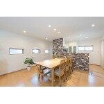 ご要望頂いた対面キッチンは、両側から回れる動線をご提案しました。ご主人こだわりのレンガ調のクロスと、ニッチの飾り棚をアクセントにしました。
