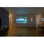 通常のヘリンボーン張はコスト高になるため、 無垢の質感を感じられる挽板パネルになっているものを採用しました。艶を抑えた質感が魅力あるリビングになりました。 計画初期からご希望されたプロジェクターなので、 大きな壁面が確保できるように間取りを計画しました。