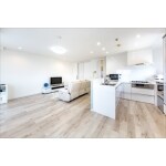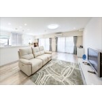 使われていない和室の一部をウォークインクローゼットとして、寝室とリビングからアクセスできるように配置。 残りの和室部分とキッチンを囲んでいた壁を取り払い、その空間をリビングに取り込んで広く明るいLDKとした。 壁紙と床、建具も白をベースに明るい色調とし、アクセントにアイスブルーを使いました。