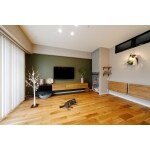 無垢フローリングと古レンガ調タイルで憧れのカフェ風リビング
