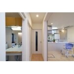 移動がスムーズになるよう、洗面所入り口の開口部を広く取ってあります。TOTOの鋳物ホーローシンクを採用し、シンク下は収納を設けず、車いすのままご利用いただけます。