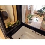浴槽の位置と洋室のクローゼットの位置を変更。 納戸を撤去して、パティオ(中庭)を作りました。 ユニットバスの浴槽の位置を変更したことで、パティオを眺めながら ゆったり湯船につかれる開放感のある明るく快適なバスルームが実現しました。