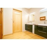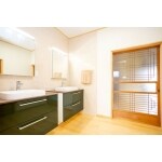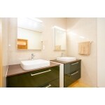 間取りも変更し、脱衣場の手前に洗面化粧台を移しました。また、2台並べることでゆったりと使用できます。