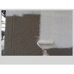 チョーキング現象は見られませんでしたが塗装表面が劣化し始め防汚効果が低下しているため雨染みが数本走っています。アクセントの白色も汚れが目立ち始めています。