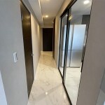 キッチンへの扉をガラス扉にし、付きあたりの扉もガラスにし、扉を閉めていても光が入る廊下に。
