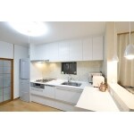 ・全体的に明るい色の仕上げにし、視覚からも明るさを感じるようにしました。 ガラスをペアガラスに変更、床暖房を入れ寒さ対策。 ・キッチンとダイニングの境になっていた壁は、耐震・構造上撤去出来ない部分を除いて撤去し、キッチンとダイニングに繋がりを持たせました。 キッチン前の壁にはモザイクタイルを採用し、キッチンのアクセントにしました。 ・暖かく、お掃除もしやすいユニットバスに変更。 ・じゅらく壁をクロス貼りにしたり、畳の表替え等をし、明るいお部屋に。