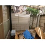 車庫後部の波板の塀を撤去して、明るい感じの扉付き(施錠可能)のフェンスを隣家との万年塀と同じレベルで設置したい。