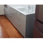 最初は全体をリフォームしないといけないとばかり思われていましたが、まだ新しい換気扇フードは残すということをご提案し、コストの削減にもつながり納得されていました。 既存のカウンター横に設置された間口調整の台は不要なので撤去することをご提案しました。