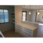 施工後はカウンターや収納が設けられました。 白ベースのフローリングにより全体が明るくなりました。