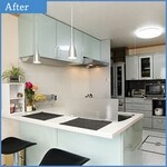 初めてお伺いしたときに「少し暗いかな?!」と感じたので 、明るく楽しく料理ができるように!と現状の間取りを考慮し、L型の対面キッチンをオススメしました。 ペット(猫)を飼っていらっしゃるので、傷に強い床材を使用しています。