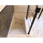 階段の腰壁を撤去して、黒いアイアンの手摺を取り付けました。