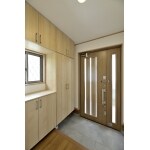 物が溢れた玄関が大きな収納を設けてすっきり。