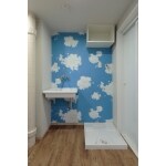 あそび心を楽しむ壁紙で洗面所リフォーム