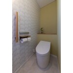 2Fのトイレはガラリとイメージを変えて、フィンレイソンの動物柄クロスに黄色のクロスを合わせた、柔らかな印象のトイレ。奥様の好きを詰め込んだ北欧テイストのかわいらしい空間です。