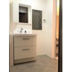 新しい洗面台は収納箇所も増え見た目がスッキリ。 掃除も楽になりました。