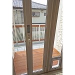 広いバルコニーを有効につかえるよう全面開口のテラスドアをご提案。廊下には猫ちゃんの引っ掻き対策のため、キズに強く清掃性の良いフロアタイルで腰壁を造作しました。
