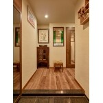 四季折々に変化する、窓からの豊かな自然の眺望を生かし、景観を室内にまで取り込むことをご提案。内装は天然木と珪藻土を選択し、外部との連続性を持たせています。 また、間接照明と鏡の効果、植物の配置を工夫し、限られた空間を視覚的に広く感じられる様に設計。パース感のある寝室のガラス引戸は、大正時代のアンティークを加工して取付けました。細かく仕切られ、使い勝手の悪かった水まわりは、UB・洗面・トイレをまとめて、ゆったりと使えるホテル仕様へ変更。