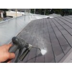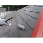 外壁とともに屋根用の「ラジカル制御」の塗料材を使用しました。こちらの塗料は親水(水が玉状にならない)化することで雨水と一緒に汚れが落ちていく機能もあります!