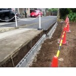 南側境界にブロックが積まれていました。隣地側に傾斜がありました。