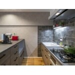 一人暮らしなので、お掃除、お手入れが簡単なキッチンを希望。デザインも、グレーでシックなイメージ。