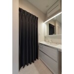 お仕事が終わる時間が遅いご家族を起こすことがないように、生活・家事の動線を考えられた洗面。 洗面の近くに収納を設けることによって、身支度を一か所で済ますことができ、お洗濯したものをそのまま片づけられ、忙しい毎日の家事をスムーズに。 カーテンで仕切ったウォークインクローゼットは、少ない力で開け閉めができるから、両手がふさがっていたり、小さいお子さんでも簡単に出入りができます。お客様に洗面をお貸ししたときにも目隠しも。 ワイドカウンタータイプの洗面だから、朝のお化粧や簡単な家事がゆったり余裕をもってでき、ユーティリティ的な役割も果たせます。