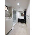 設備の老朽化と狭さがお悩みだった洗面をはじめとする水まわりを、間取りを変更して、大幅にスペース拡大。 LIXIL製MVのフルスライドタイプとトールキャビネットを採用し、かつ壁に造作棚を設けて収納力も格段に上がった洗面は、朝の忙しい時間もスムーズに身支度ができるものに。 玄関につながっている小さな室内窓が風と光を取り込みます。