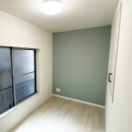 畳からフローリングに変更し、壁、収納扉を白で統一しグレーのアクセントクロスでお洒落な洋室になりました。