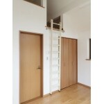 以前のクローゼットは、間口が広く大容量収納可能でしたが、 屋根裏収納へのはしごを使う度にかけなければならず、とても不便でした。 今回は屋根裏収納を活用できるようにクローゼットを小さくし、 はしごをかけたままクローゼットが使用できるようにしました。