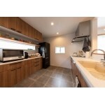 ・回遊家事動線 ・大容量のパントリー(入口は三角屋根形状で可愛らしく) ・奥様こだわりのクロスアクセントやセレクトされた照明が全て北欧テイストでまとめられている。